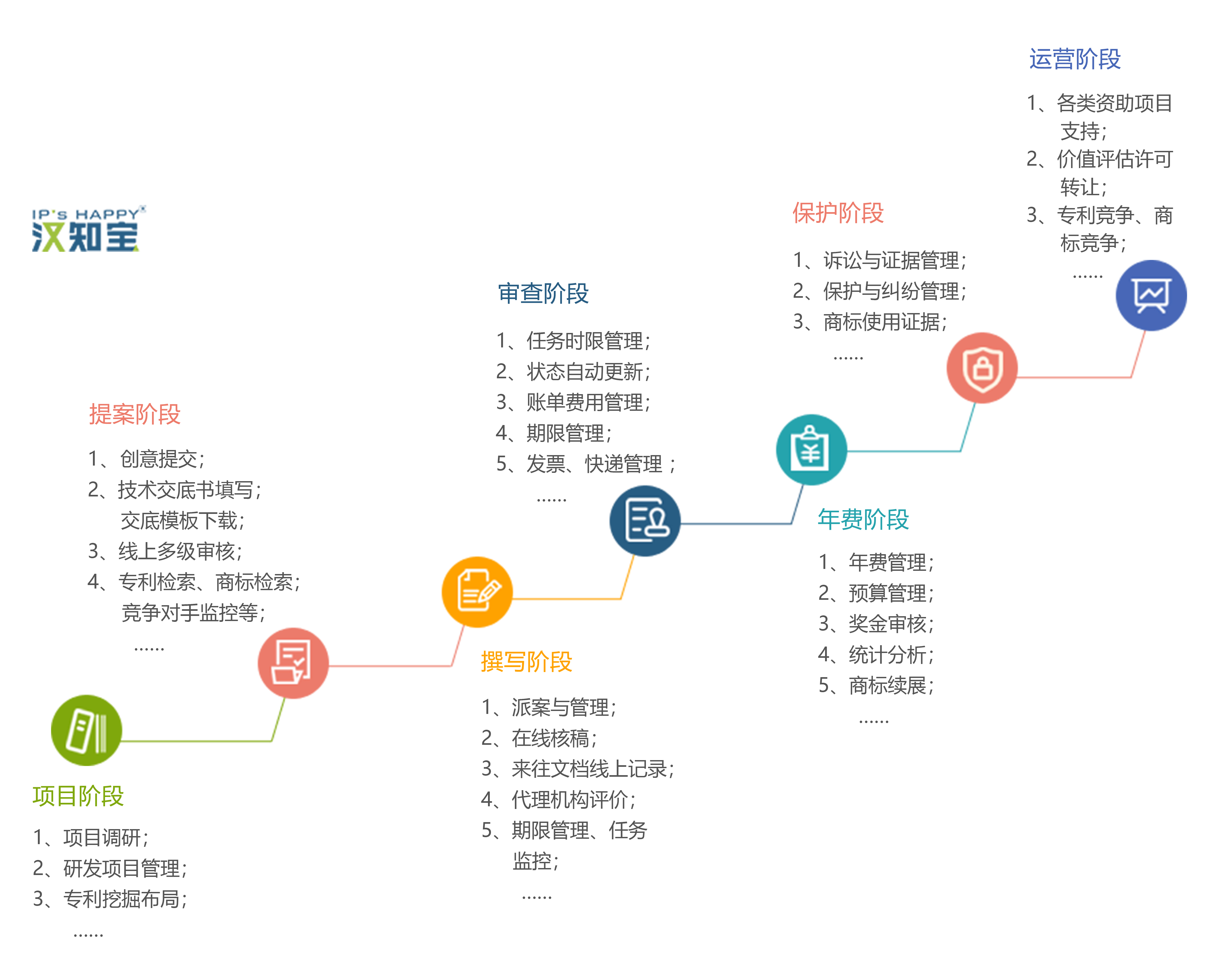 汉知宝知识产权管理平台,紧密围绕企业专利管理痛点、商标管理痛点、软著管理痛点提供解决方案,是当前企业实用、功能丰富、性价比高的知识产权管理软件。